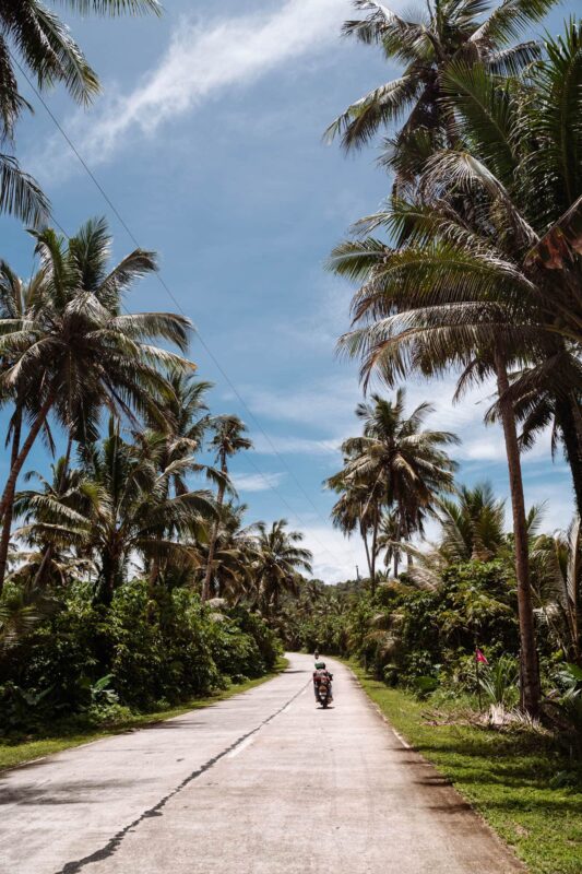 The road from the viewpoint to the next stop is also definitely worth mentioning. This road goes through a palm tree plantation and is called Siargao Palm Tree Road, also known as Burgos Coconut Road. It’s beautiful to zip through here.