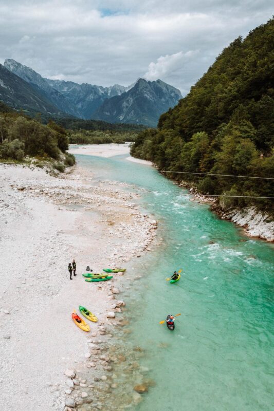Kayaking on the Soča River is one of the best things to do in Bovec! It’s not just about the sport itself—the surroundings are truly spectacular. As you paddle down the river, you’ll be surrounded by the majestic peaks of the Julian Alps, right in the heart of one of Slovenia’s most beautiful natural areas.