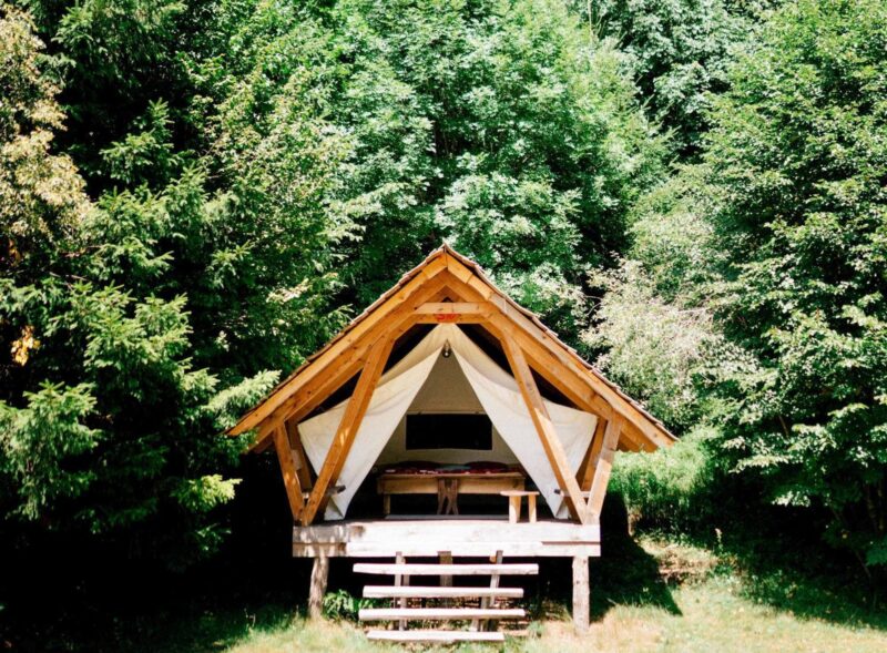 Adrenaline Check Camping is one of the most unique stays in Bovec. You’ll sleep surrounded by greenery in cozy, furnished tents with real beds. In the evening, gather around the campfire and enjoy a sky full of stars. The campsite is located about 4 kilometers (2.5 miles) from the center of Bovec.