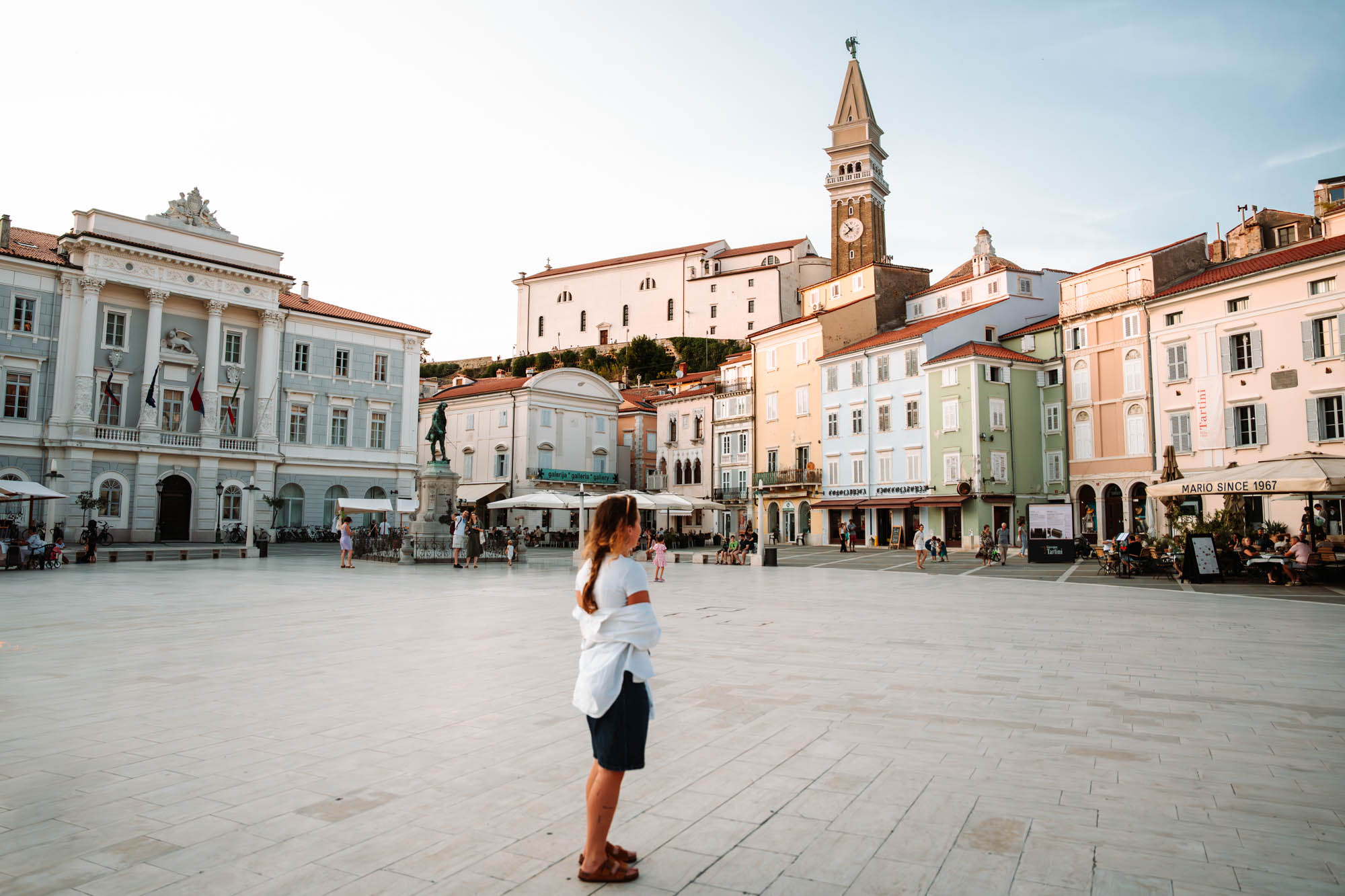 End your journey on the Adriatic coast, in Piran. This atmospheric harbor town sits on a narrow peninsula and radiates a Mediterranean vibe. Venetian influences can be seen everywhere—in the colorful houses, churches, and the picturesque Tartini Square. Wander through the narrow streets, climb the old city walls for views over the red rooftops and the sea, or cool off at one of the small beaches along the promenade. For a touch of history, visit St. George’s Church or the Minorite Monastery. In the evening, the promenade is the perfect place to settle in for a dinner of fresh seafood. Order a glass of Slovenian wine and watch the sun sink into the sea—a perfect finale to your road trip. Check out our tips for Piran.