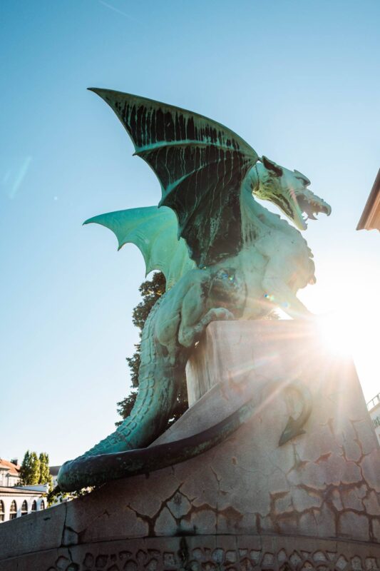 The Dragon Bridge (Zmajski Most) is one of Ljubljana’s most iconic landmarks. It sits right in the heart of the city, connecting the Old Town with the Trnovo district. What makes it so special are the four large green dragon statues guarding each corner of the bridge. According to legend, the Greek hero Jason once slew a dragon here — and since then, the dragon has become the symbol of the city.