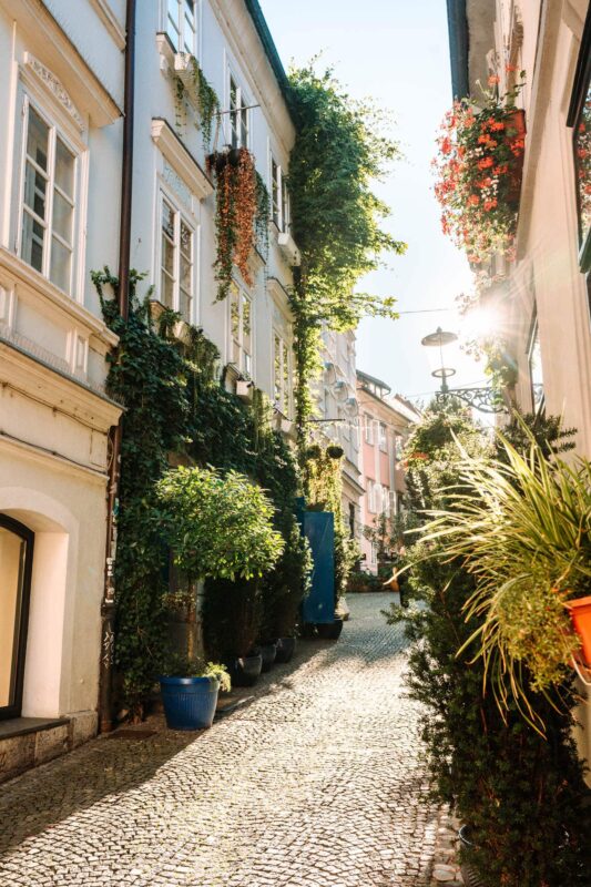 Cross the Dragon Bridge and you’ll find yourself on Trubarjeva Street — a lively mix of small boutiques, colorful murals, and cozy cafés. Because it’s popular with students, you can grab a tasty meal here for just a few dollars. One of our favorites is Abi Falafel, where you can enjoy a delicious falafel wrap for a great price. Trubarjeva Street has a more alternative, laid-back vibe compared to the classical city center, which makes it extra fun to explore on foot.