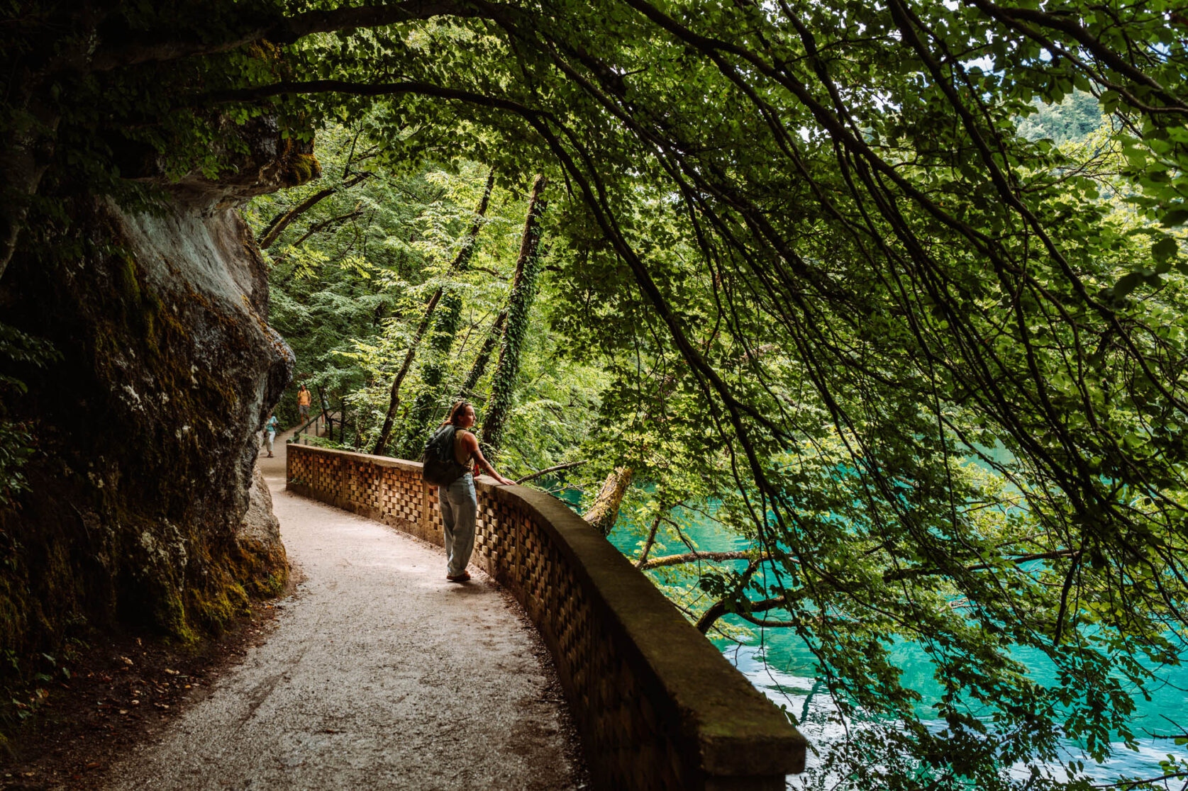 The hike to Peričnik takes about 20 minutes through a shaded forest. The trail is easy but can be steep and slippery in spots, so wear sturdy shoes. Once you arrive, you’ll be greeted by a dramatic curtain of water plunging nearly 50 meters (164 feet). Walking behind the waterfall is magical — you’ll feel the mist, hear the thunderous roar, and look out over the valley through the sparkling water.